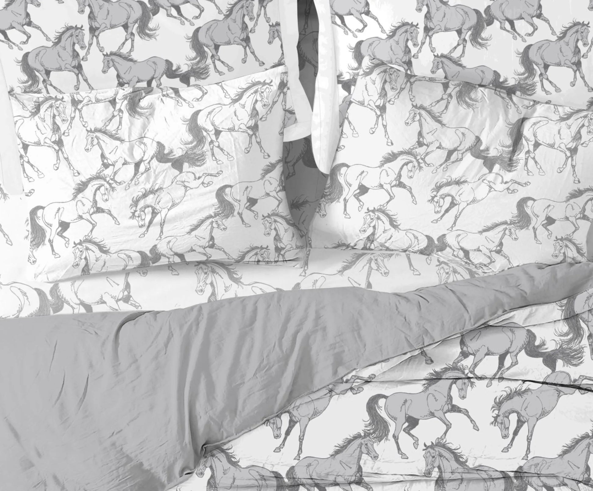 AWST Int'l "Lila" Elegant Horse Sheet Set- White w/ Gray- King
