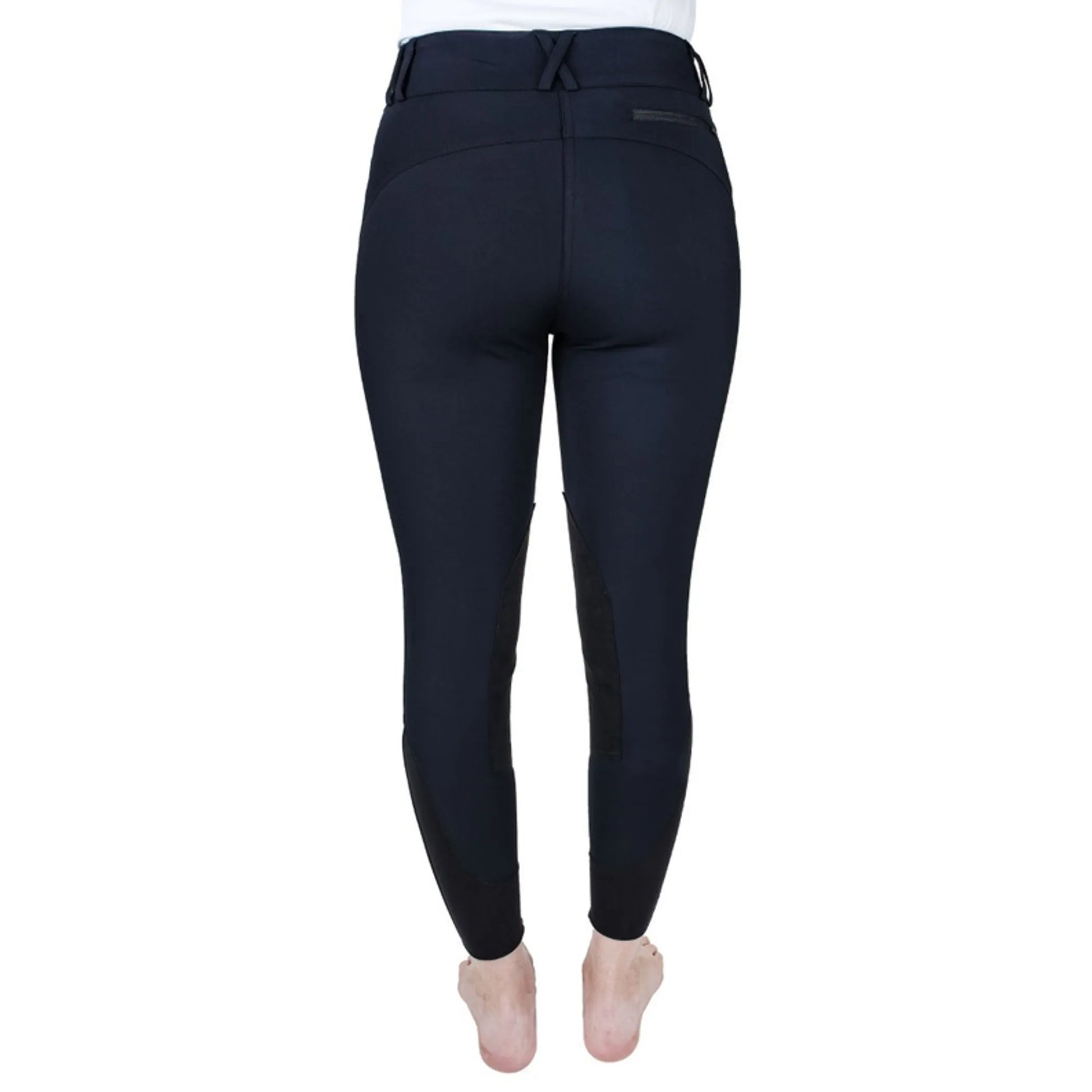 The Equine Couture Charlotte Suede Knee Patch Breech combines Nylon and Spandex to give you the perfect amount of stretch and fit for each ride. The Clarino Knee Patches provide optimal grip. Complete with one back zip pocket large enough for your cell phone and a wide waistband with cross over belt loops, the Charlotte gives a classic style a modern twist.