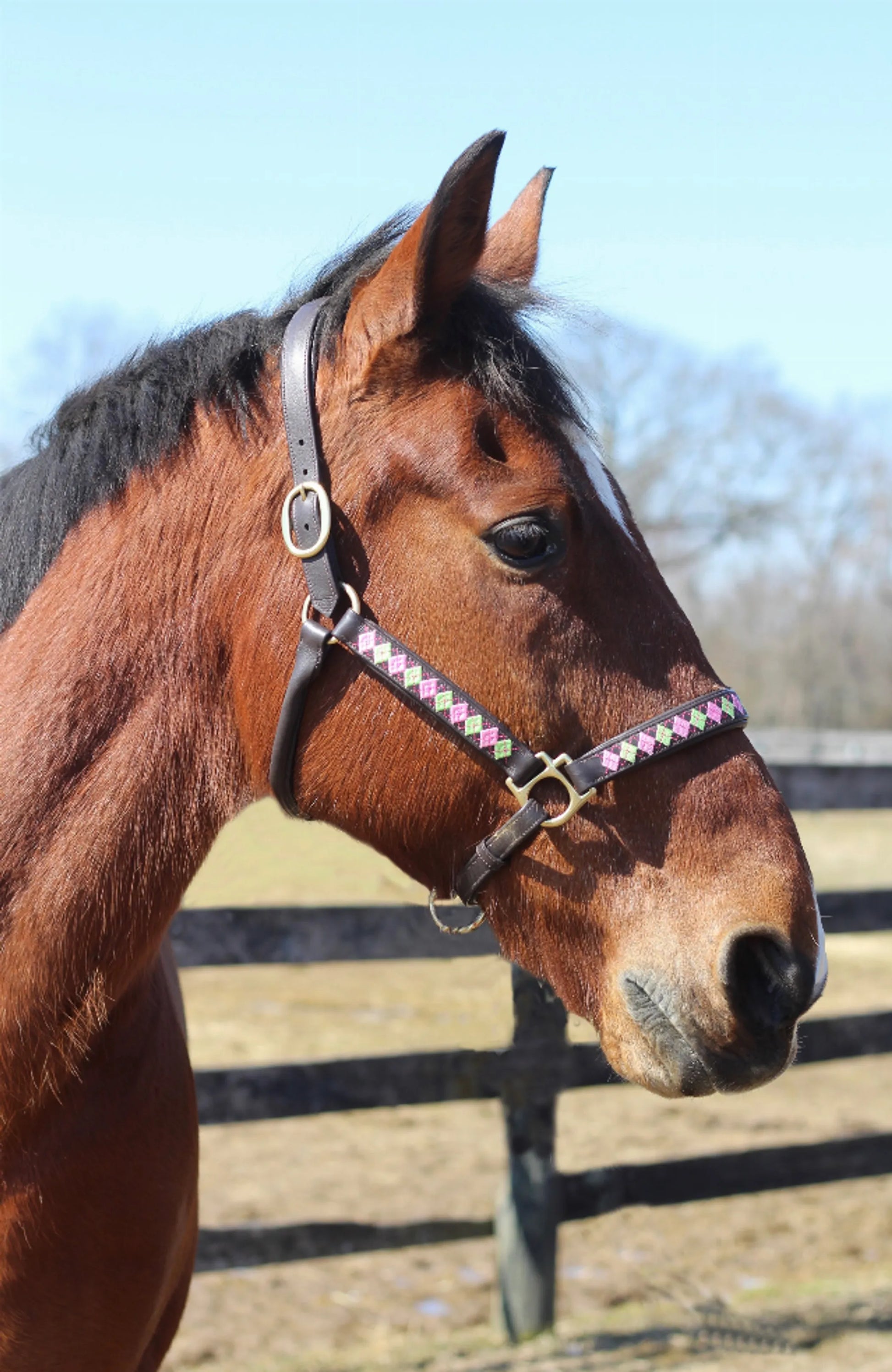 For a classic, preppy look, the Henri de Rivel Buffy Embroidered Leather Halter will be the perfect fit. This halter includes an embroidered argyle diamond pattern in contrasting colors for a non-traditional flair. The Buffy also includes functional features like an adjustable crown and chin so an ideal fit will be easy to achieve. Bring a new modern flair to your tack collection with the Buffy halter.