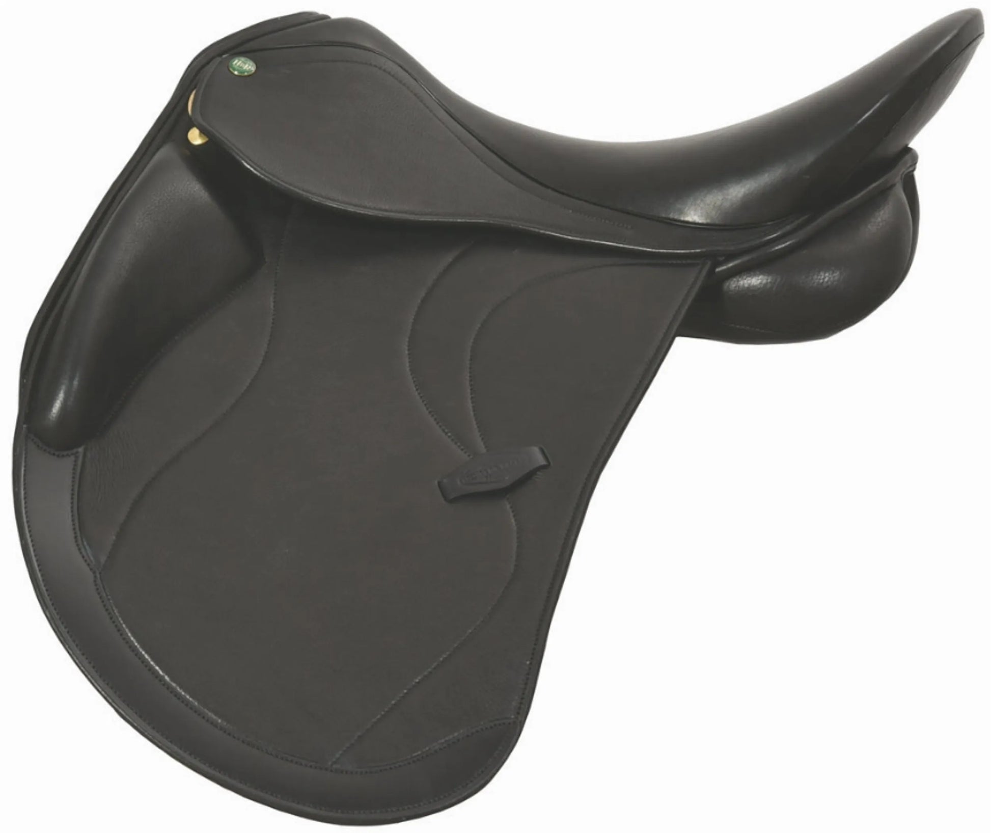 The Henri de Rivel Ventura Dressage Saddle is designed with the horse and rider's comfort in mind. The soft, grippy covered leather allows for minimal break in time. The flocked panels can be molded as necessary by a professional if your horse's back tends to change. The moderately deep seat gives a close feel, while the knee blocks give superior leg support.