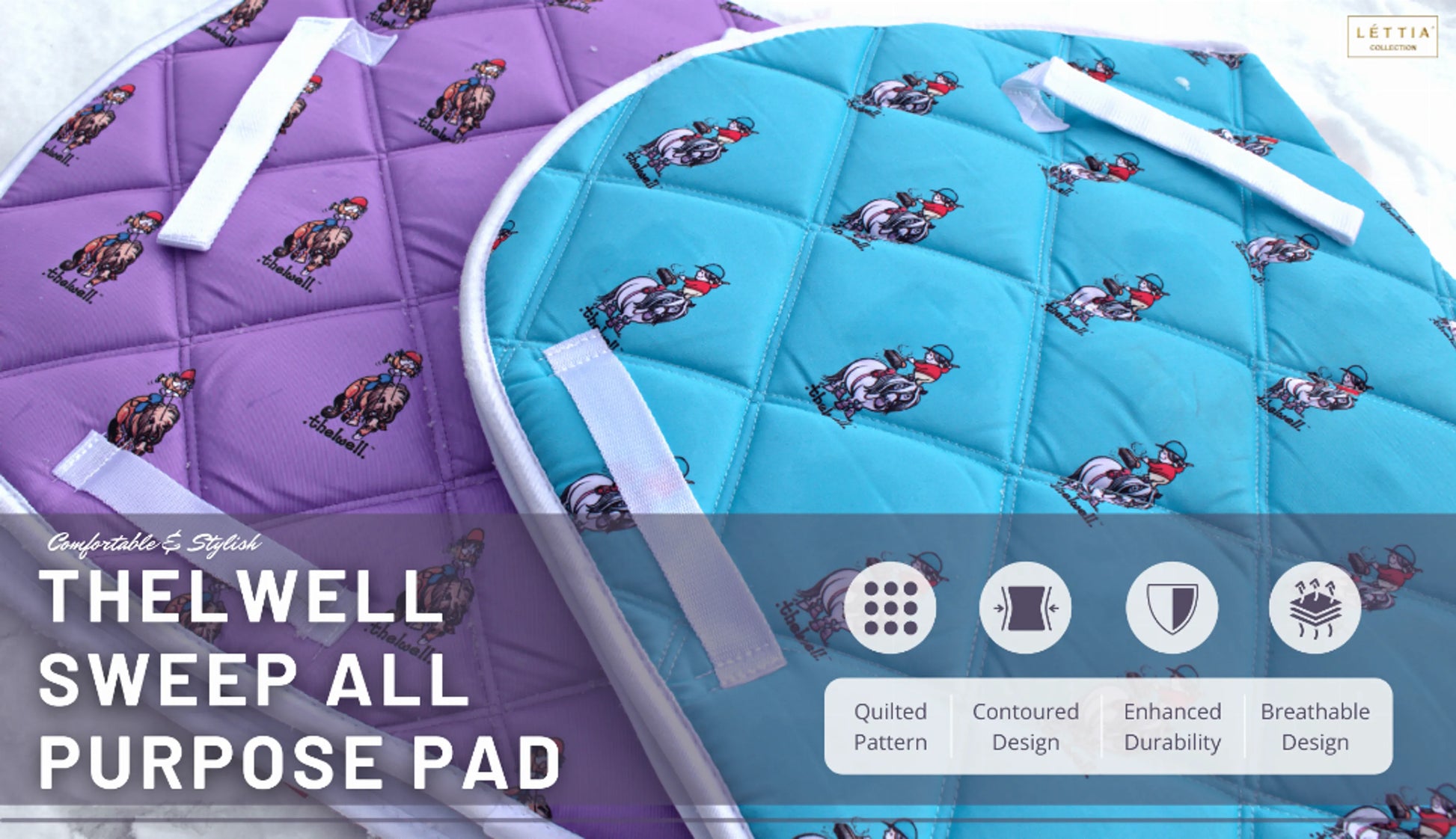Give your horse a playful and comfortable texture with this amusing Thelwell Sweep Quilted Pattern All Purpose Pad from the amazing collection of Lettia. This all-purpose pad is quilted with billet straps and girth straps which provide an anti-sliding feature and efficiently hold the pad in its place to avoid uncomfortable structure while riding. Designed in multiple shades and fun Thelwell-inspired character print to add a playful and vibrant hue to the pad. Prepared from a blend of polyester and cotton fabric, this pad offers a comfy texture, breathability, durability, and less soreness to your horse's back. The sweep and all-purpose feature makes this saddle pad an appropriate accessory for your horse by providing a soft and proper fit.