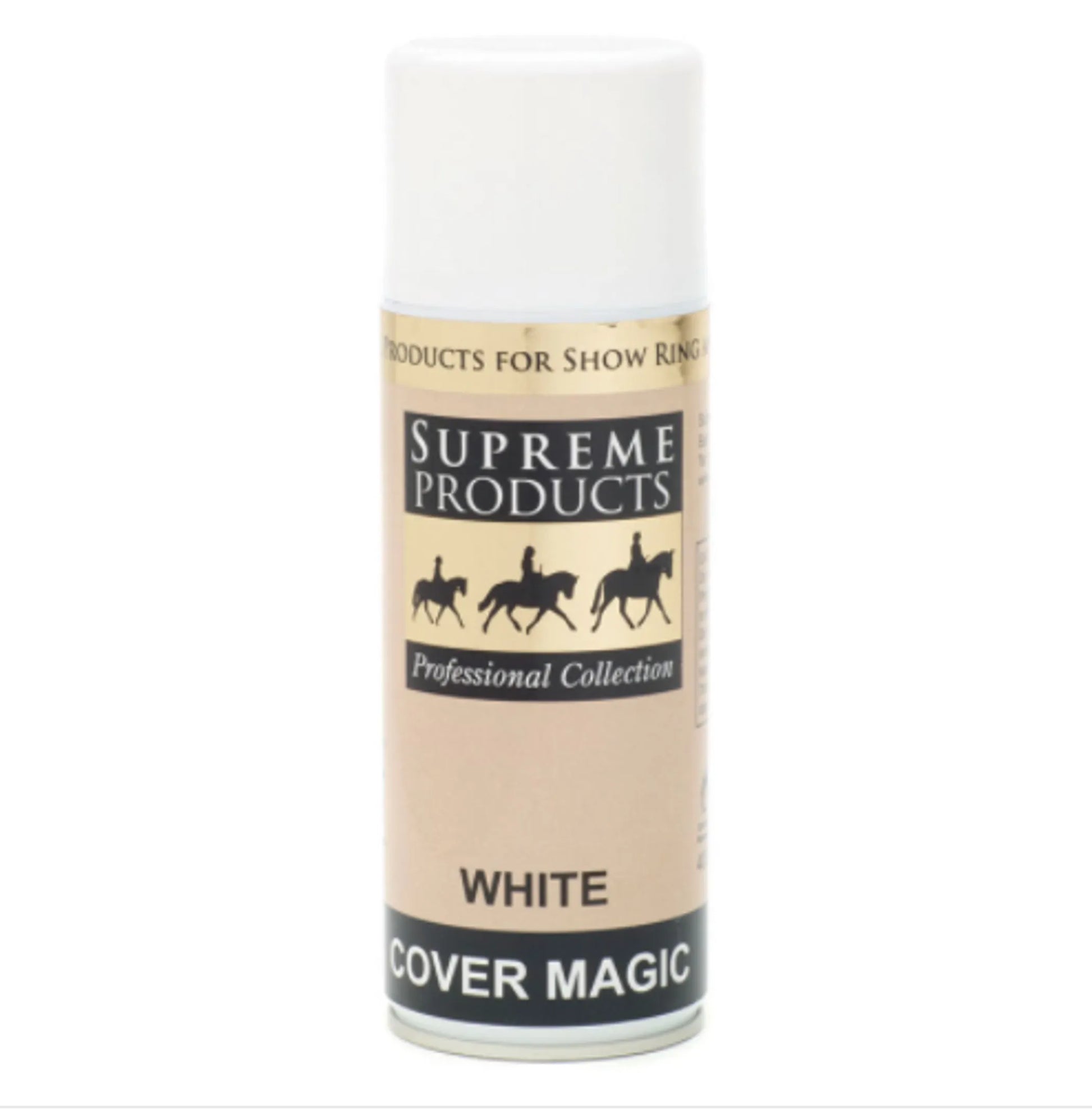 Supreme Products Cover Magic White can be used to cover over marks and scars and cover over last minute stains. Cover Magic White can also be used to whiten socks and is the perfect product to touch up white socks between classes. Spray from a distance of approx. 10 inches through the tail to cover stains and brush with a soft brush to disperse.