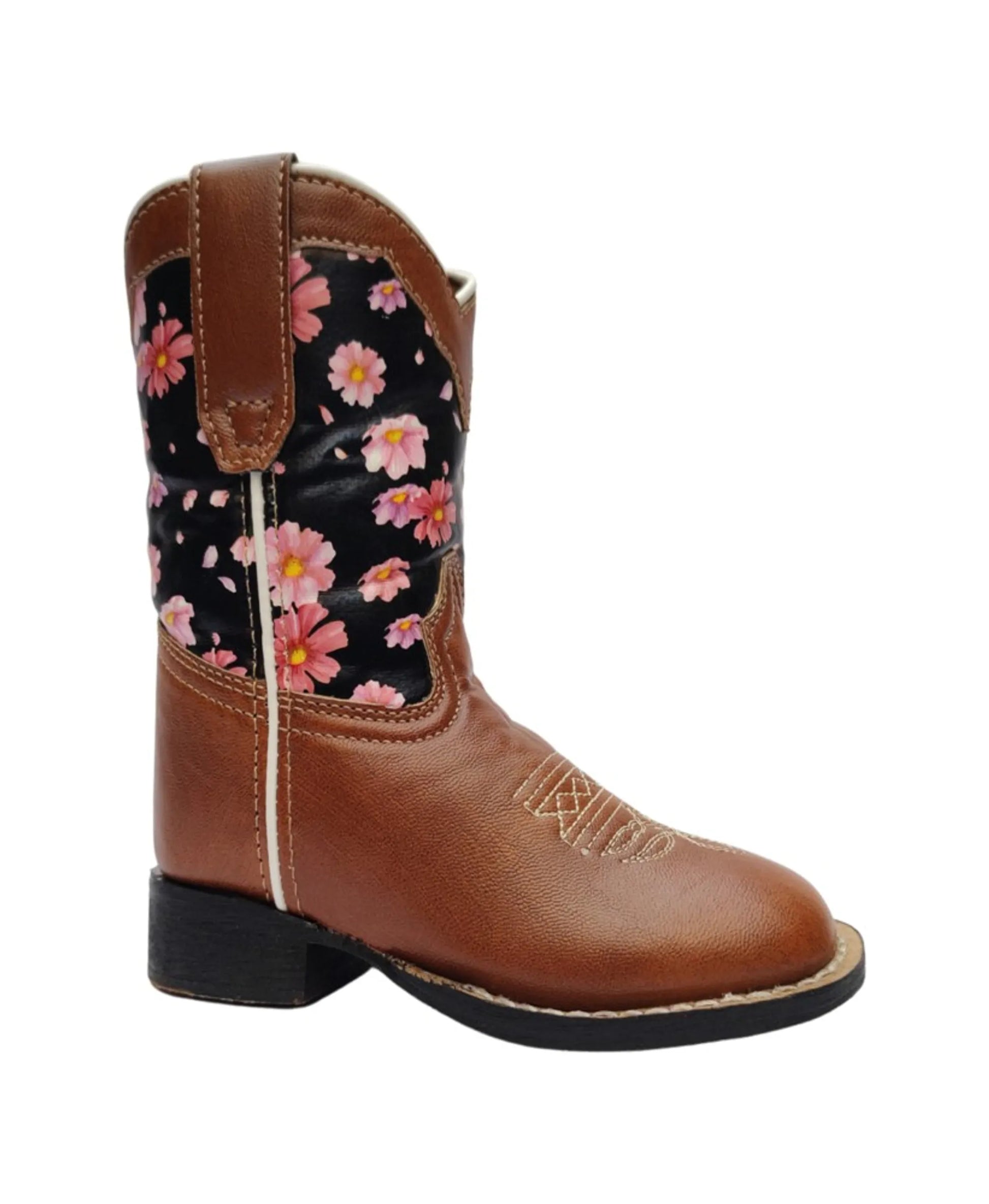 TuffRider Children's Pinnacles Square Toe Western Boot- Brown Floral- 10C
