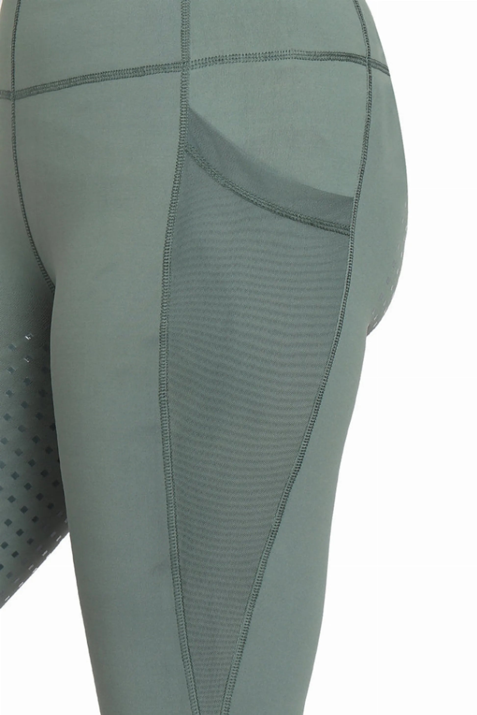 The flattering TuffRider Ladies Minerva EquiCool Tights are now available in full seat! The Ladies Minerva EquiCool Full Seat Tights are great for summer schooling when you need to stay cool! Soft, comfortable, breathable, and infused with our EquiCool technology, these tights allow for moisture wicking and additional UV protection, so you'll have no problem being out in the heat riding or working around the barn. Features include, mesh cell phone pockets and contoured sock bottoms made from mesh for ultimate comfort and convenience. The silicone patch gives the rider serious stick in the saddle.