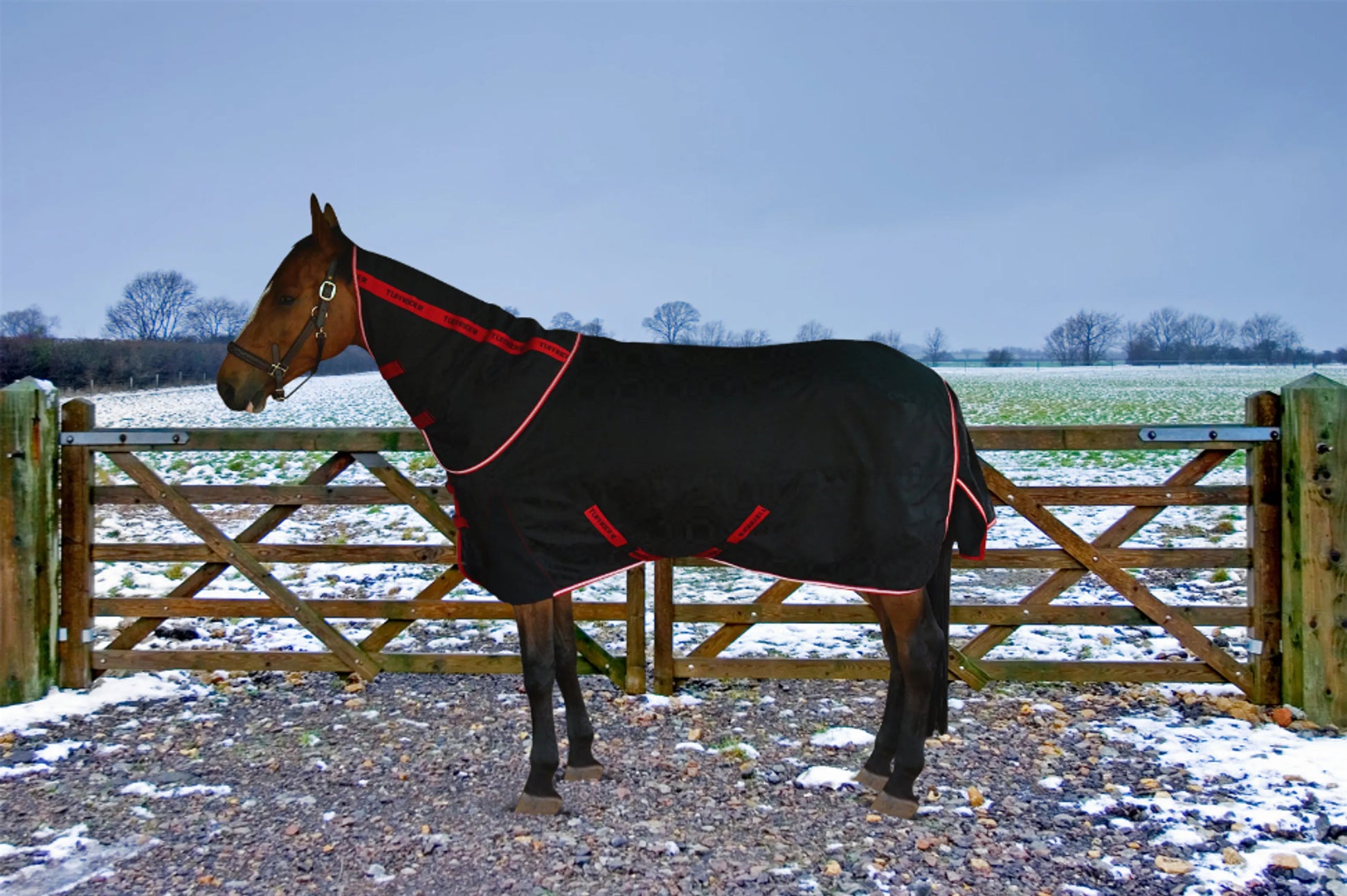 For strong protection against the worst winter conditions, the Optimum 1680D Outer Armour Turnout Blanket includes a medium weight Thermo Manager lining equal to 220gms polyfill. This Top of the Line TuffRider Blanket has a detachable neck for full neck coverage. The eye-popping black and red contrasting colors and reflective trim will stand out whenever turned out, making your horse easy to see for safety.